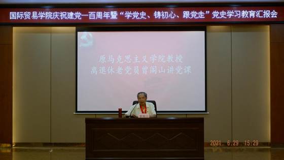 629日下午,伊莉影片 党委、关工委开展庆祝中国共产党成立100周年暨“学党史、铸初心、跟党走”党史学习教育汇报会。在校关工委支持下,学院关工委邀请到了原马克思主义学院教授、84岁离退休老党员曾阁山先生参加此次活动,参加活动的还有伊莉影片 党委副书记、学院关工委主任殷丽娟、辅导员、学生代表等50余人。