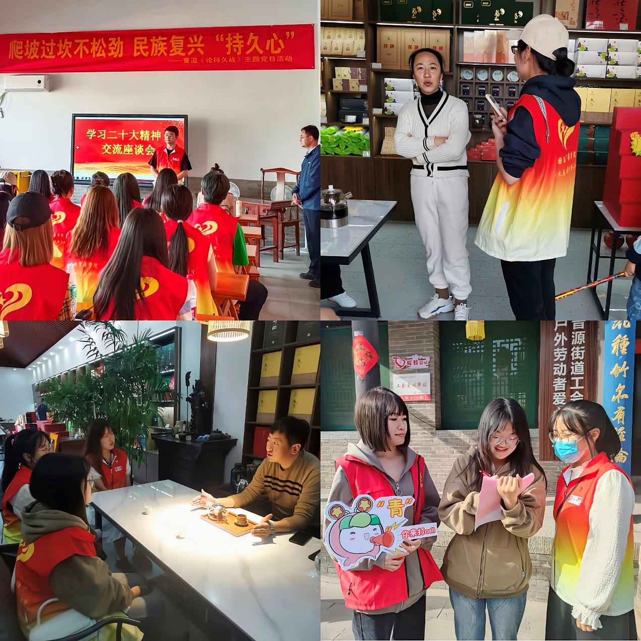 团委与团晋源区委在太原古县城研学中心会议室开展了主题为“团聚晋源共青春,加强交流促发展”的座谈会,会上大家共同学习了“党的二十大报告金句”等主要内容,团晋源区委的工作人员为师生介绍了晋源厚重的历史、丰富的文旅资源、引才引智的诚意,古县城社区的工作人员介绍了太原古县城的历史文化,与会青年围绕文化传承创新与青年历史担当进行了讨论,对于青年学生如何坚定文化自信,深度挖掘传统文化内涵和时代价值进行了深层次、多维度的研究。