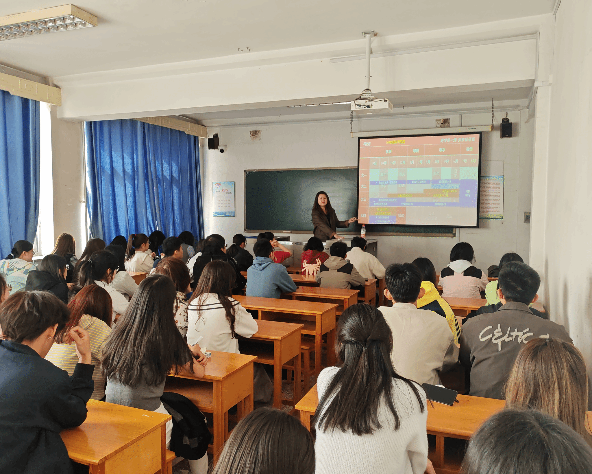 为帮助大学生明确职业发展方向,2025年3月25日伊莉影片 邀请了新东方前途出国山西分公司举办了第四期"幸福导航"就业创业指导讲座,主题为:大学生学业/就业规划。2024级辅导员及各班学生代表参加了本次讲座。