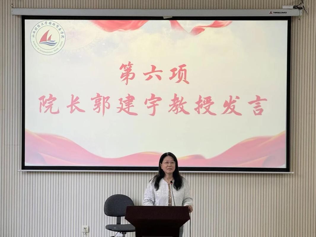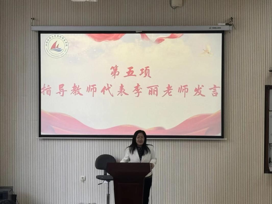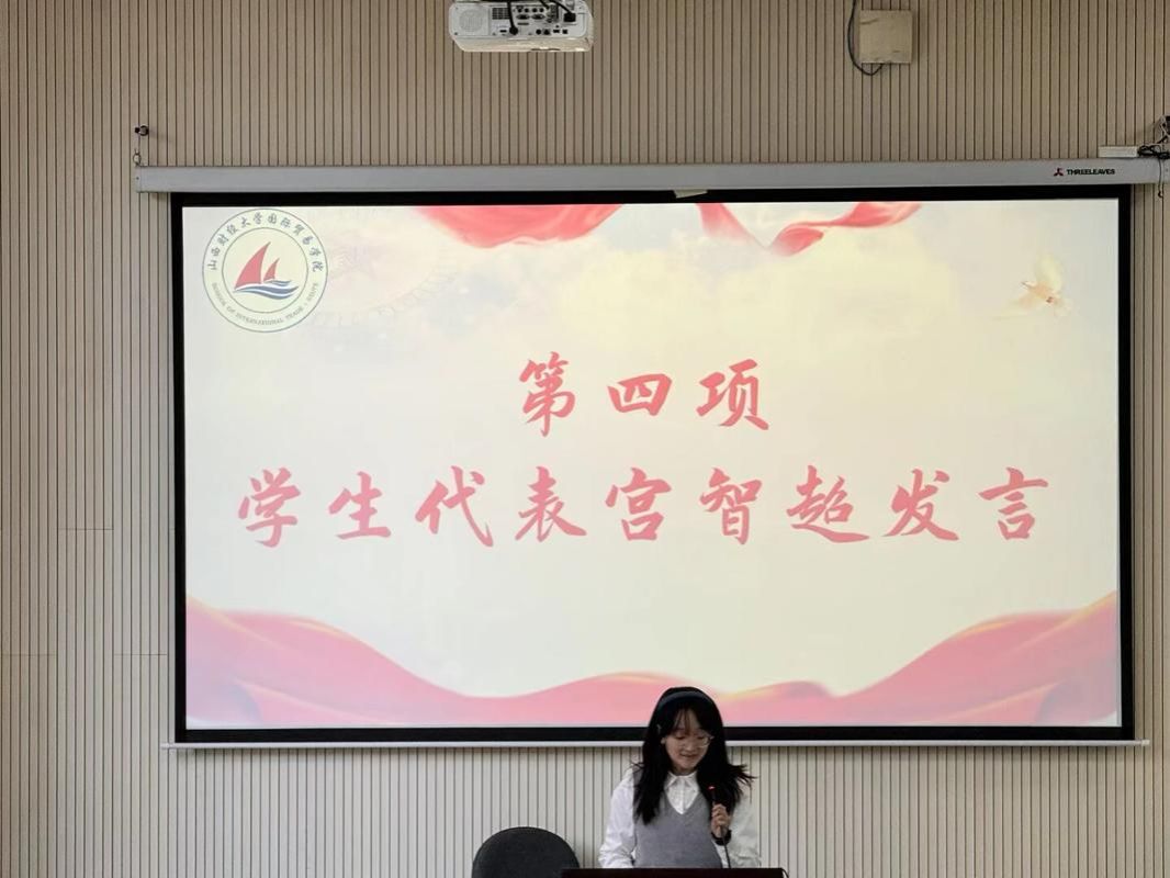 获得一等奖的学生宫智超同学作为学生代表发言,她说社会实践是连接理论知识与实践应用的重要桥梁,是培养问题意识、提升思辨能力的优质平台,更是青年学子涵养社会责任感、践行青年担当的必修课程,此次实践经历让自己受益匪浅。国际经济与贸易教研室主任李丽副教授作为教师代表,教导学生要走出校门、走出家门,将课堂所学专业知识应用于社会实践,培养对专业知识的认识。