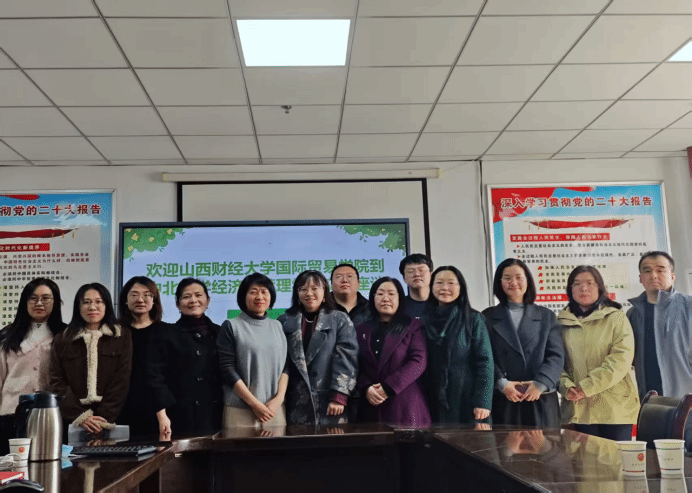 国际商务教研室主任刘青云副教授、国际经济与贸易教研室主任李丽副教授等一行8人前往中北大学经济管理学院进行交流访问。中北大学经济管理学院经济学系主任周丽娟教授、国际商务专业硕士导师温丽琴副教授等热情接待了来访教师。